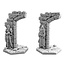 Each piece features a crumbling stone archway flanked by detailed statues of a knight and a lady, one on each side. The base is adorned with eerie elements like skulls, a sword or an arrow, creating a dramatic and ominous look that fits any dark fantasy scene.