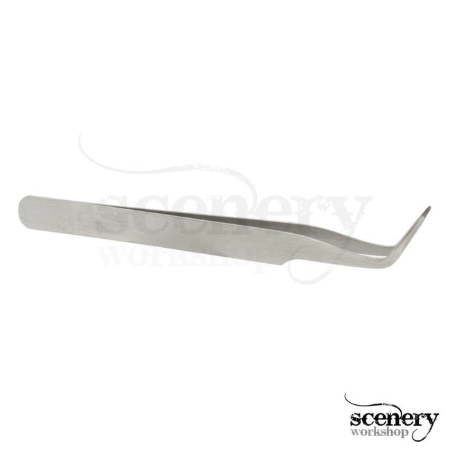 Hobby & Crafting Fun Tweezers with curved tip (Fine Tip Curved Tweezers - 12080-8023). A stainless steel tweezer (tweezers) with a fine curved tip, perfect for picking up and placing small parts that straight tweezers just can't reach. Sometimes working around a corner is a bit more pleasant.