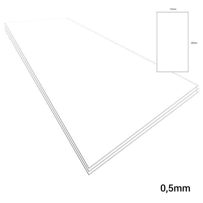 3x 0,5mm thick plain white polystyreen sheets (152x292mm)