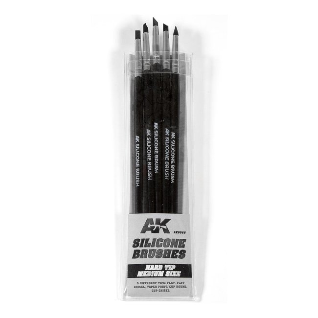 Set of 5 black Silicone tip brushes with medium sized tips and a "hard" hardness. The perfect tool when undertaking any modeling job. Also suitable for applying oil glazes on flat vehicle surfaces. The variety of tips in the set will make it easy for you to tackle any type of job. Suitable for any modeling putty, Apoxie Sculpt, Greenpower, Milliput, Sculpey, Fimo, etc. Use water, alcohol or vaseline as a softening agent to prevent the putty from sticking to the tip of the brush, extend its life by rinsing them regularly with soap and water gently.