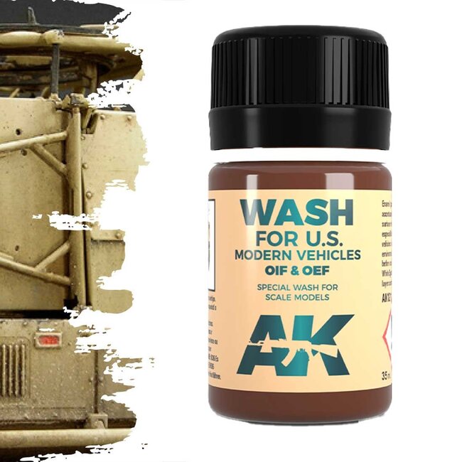 The perfect color for a wash in modern US vehicles OIF and OEF. This Dirt color wash has been specifically suited for use over Modern US sand colored vehicles. The basic technique used to weather any type of model is the wash, a classic technique that is still one of the most used techniques in modelling today. Apply the washes after shaking the bottle with a large brush to pick out details and creating shadows. The excess of the wash can be easily removed with a clean brush and White Spirit. Enamel type wash for modelling.