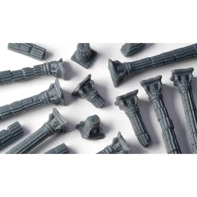 Ancient Columns Basing Bits brengen de sfeer van vergane beschavingen en mythologische grootheid tot leven op je miniatuur- of dioramabases. Deze complete bundel bevat een verzameling zuilen, kapiteelstukken en gebroken stenen, allemaal 3D-geprint in ultrahoge resolutie en vervaardigd uit duurzaam hard resin. Elk stuk is met uiterste precisie ontworpen om de verweerde pracht van oude tempels en vergeten steden vast te leggen.