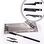 Handvatset met 3 zaagbladen aanpasbaar aan verschillende klussen. Ideaal voor het maken van nauwkeurige zaagsneden in kunststof, hout of hars. Het bevat een elegant zwart gelakt handvat met een verstelbaar antislipsysteem om verschillende messen of messen vast te houden. Het omvat een mes met halve maan voor het werken aan gebogen stukken, een standaard mes voor alle soorten sneden en een dun mes voor sneden op moeilijk bereikbare plaatsen.