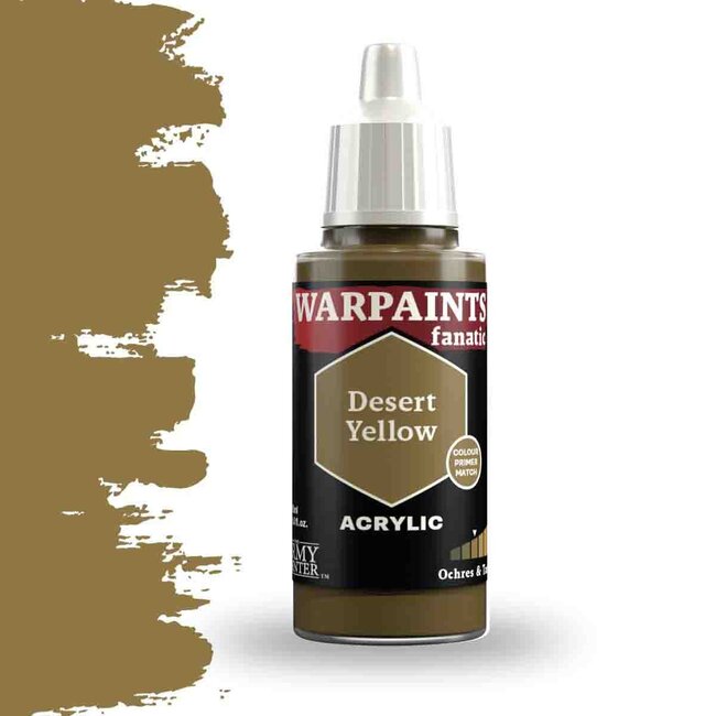 The Army Painter Warpaint Fanatic Desert Yellow is ideaal voor schilders van elk niveau en biedt 300-700strong yellowish brown meer pigmentatie dan andere verven. Deze serie van hoogwaardige acrylverven garandeert een uniforme dekking over alle kleuren.