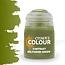 De derde laag zal de lichtere laag zijn. Nu gaan de lichtere contrastverven niet gemakkelijk over de donkere, dus moeten we de originele Militarum Green kleur hier over opnieuw aanbrengen. Als laatste kan dan de lichtere kleur aangebracht worden.