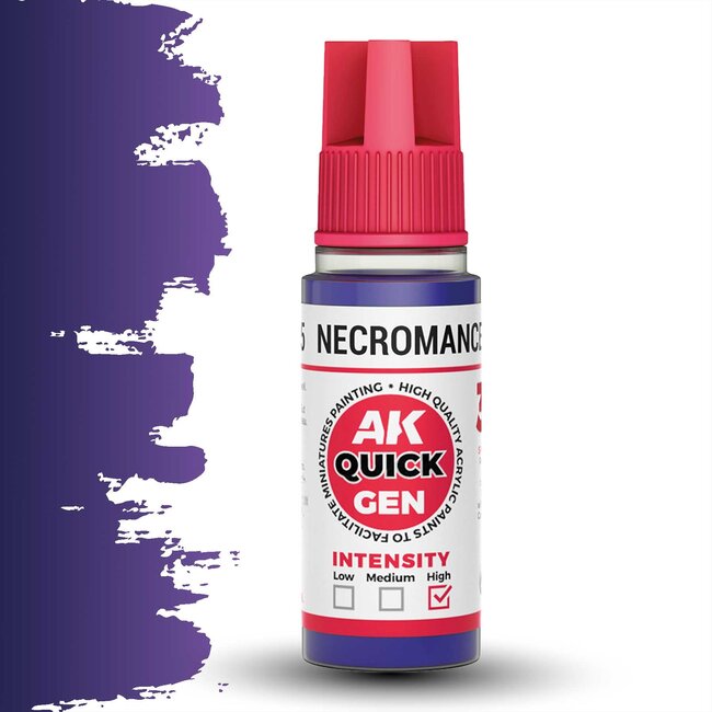 AK Interactive presenteert Necromancer Purple Quickgen Paint (AK17005) – een diep, intens paars dat de essentie van duistere magie en schaduw perfect vastlegt. Ontworpen voor schilders die dramatische contrasten en rijke kleuren willen bereiken, is deze tint een must-have voor fantasy-miniaturen en sinistere karakters.