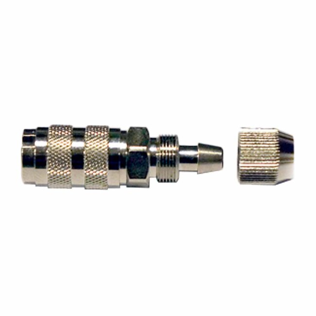 Airbrush snelkoppeling NW 2,7 mm met slangaansluiting voor 4 x 6 mm slang (binnendiameter x buitendiameter). Deze koppeling verbindt de slang met de airbrush en is geschikt voor alle airbrushes met een standaard 2,7 mm steeknippel.