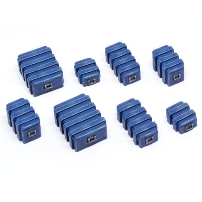 De set bevat 8x dozen gemaakt van resin. De set bevat 4 formaten dozen en de set bevat 2 dozen van elke grootte.