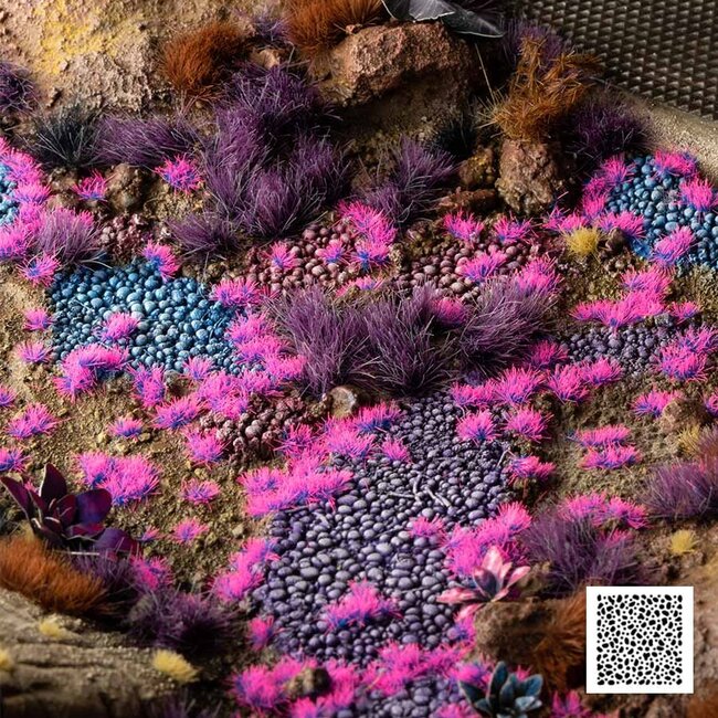 Zeer kleine en lage tufts met blauwe en roze kleuren vermengd, wat een vreemde gloed suggereert. Perfect om buitenaardse, fantasie- of magische scenario's te creëren. Gebruikt in combinatie met Alien Neon tufts bieden ze een verscheidenheid aan vormen en maten die een fantastisch detail geven aan je bases en modellen. Ook aanbevolen voor zeer kleine schalen. Dit blad bevat ongeveer 500 Tiny Grass Tufts voor uw schaalmodellen, hobbyfiguren en schilderachtige diorama's. Tufts pellen het vel één voor één af en ze zijn klaar voor gebruik